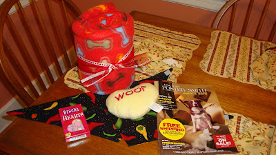 Glad you liked everything in your little surprise Valentine Day box ... and Louis looks great in his hot pepper bandanna ... I'm still on the hunt for other food-type of fabrics (just for Louis).
